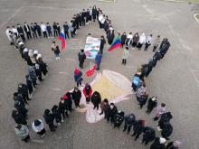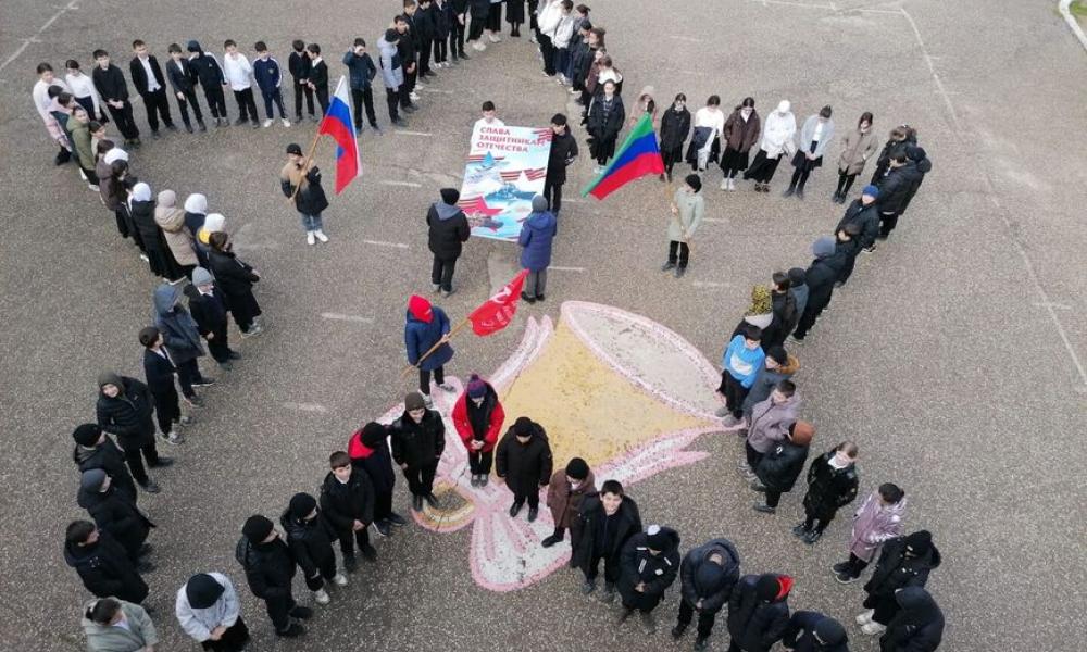 Во дворе Новокаякентской СОШ провели флешмоб. Участники флешмоба выстроились в виде пятиконечной звезды. Библиотекарь Дейбукской сельской библиотеки Ахмедов С.Р. с учащимися школы провел урок мужества «Ратная слава героев российской земли».