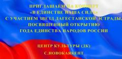Жителей и гостей Каякентского района приглашают на яркое культурное событие — праздничный концерт «В единстве наша сила», посвящённый открытию Года единства народов России.